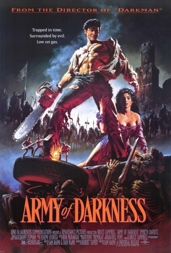 Ο Σάμ Ρέϊμι, πέντε χρόνια μετά το σίκουελ του Evil Dead, πιάνει τον ήρωα του από εκεί που τον είχε αφήσει. Οι λογαριασμοί είναι ανοιχτοί και η τριλογία οφείλει να κλείσει. Με το αλυσοπρίονο στο χέρι, ρουφηγμένο σε μια δίνη του χρόνου, ο Άς του Μπρούς Κάμπελ παγιδεύεται στη μεσαιωνική Αγγλία. Εκεί, αρχικά θα φυλακιστεί, μετά θα βαπτιστεί ήρωας και φυσικά θα ερωτευτεί. Είναι το περίφημο βιβλίο των νεκρών, εκείνο που θα τον βοηθήσει να επιστρέψει στο παρόν, ή μήπως θα τον φορτώσει με μεγαλύτερους μπελάδες; Νομικά κωλύματα, που είχαν να κάνουν με την κατάρρευση του κύριου χρηματοδότη, του De Laurentiis Entertainment Group, δεν επέτρεψαν την χρήση της λέξης Evil Dead στον πρωτότυπο τίτλο. Εδώ που τα λέμε, καλύτερα. Γιατί, πέρα από την χρήση του κεντρικού χαρακτήρα, τίποτε δεν θυμίζει σε ύφος τα προηγούμενα κεφάλαια της σειράς. Ο τρόμος απουσιάζει και την θέση του καταλαμβάνει ξεκάθαρα, η κωμική περιπέτεια φαντασίας. Αν το δείτε σαν νέο επεισόδιο, είμαι σίγουρος ότι θα απογοητευτείτε.
