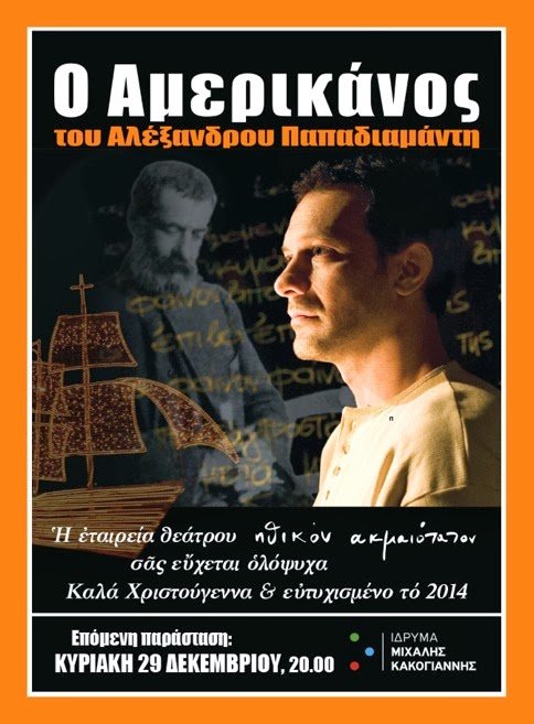 Μια ιδιαίτερη θεατρική μεταφορά του ομώνυμου κλασσικού διηγήματος του Σκιαθίτη συγγραφέα για έναν ηθοποιό και έναν μουσικό. «Ο Αμερικάνος» του Αλέξανδρου Παπαδιαμάντη είναι μια ιστορία αγάπης και ξενιτιάς.